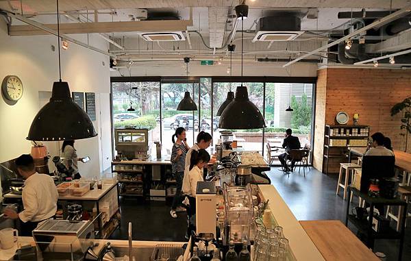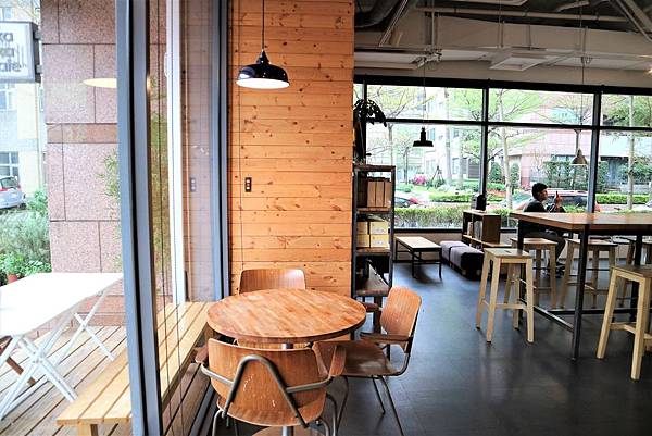 店內色調以淺木頭色為主,搭配簡約的線條,添加空間的層次感,四周有大量落地窗,非常明亮,是個能曬太陽的咖啡廳。