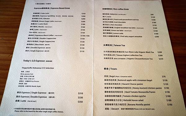 菜單如下(2017/03),就咖啡廳而言,選擇性我覺得還算蠻豐富的(貝果、帕尼尼、鹹派、甜點都有)。
