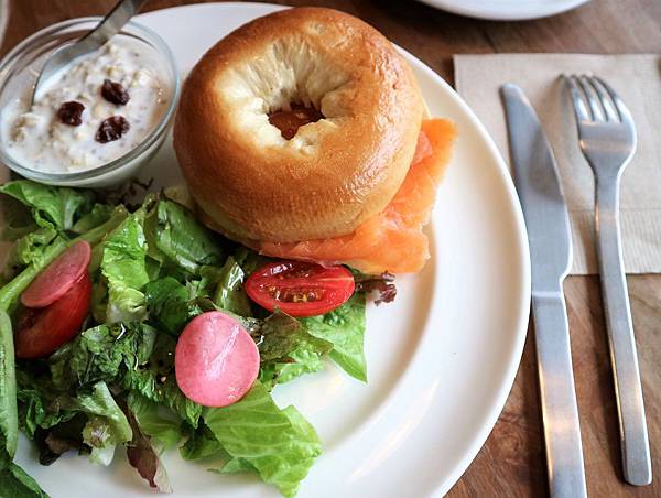 - Ms.A:美式+煙燻鮭魚貝果,貝果口感屬於有嚼勁的,塗上一層奶油乳酪,搭配煙燻鮭魚毫不搶味,但我最喜歡的還是冷燕麥,可以單賣燕麥嗎☺