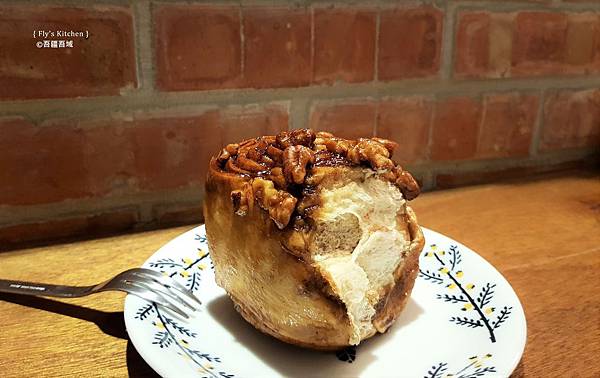 {Fly's Kitchen}肉桂捲每天現做,經過兩次發酵,端上剛烤好的肉桂捲,肉桂香氣濃厚,一看雖然尺寸比星巴克小顆,以為會吃不飽...